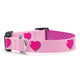 Made in the USA! Our fashionably fabulous ribbon collars come in a variety of lengths and in three widths to perfectly suit your dog's shape and size. Our collars are made from high-tensile strength nylon webbing with sewn on polyester and nylon ribbons, and are stain and fray resistant. They are designed to last a lifetime! Complete the look with the matching harness and lead.